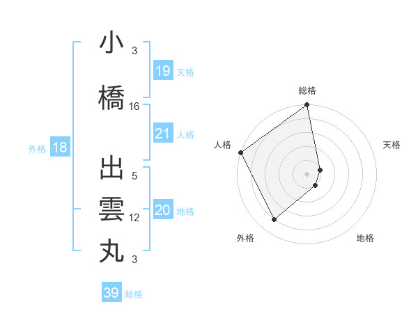 小橋 出雲丸さんを姓名の画数から五運を鑑定