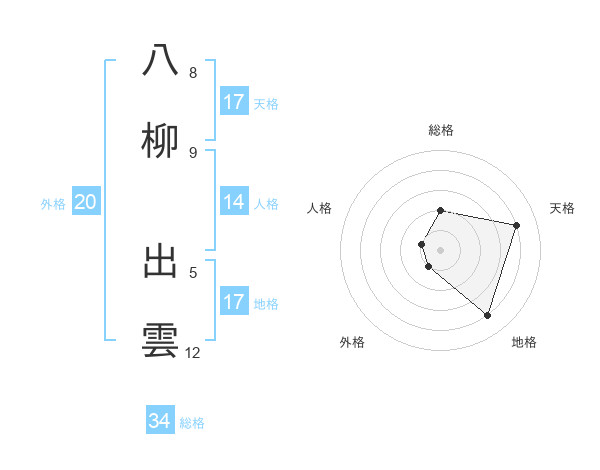 八柳 出雲さんの天格は17画の4点!