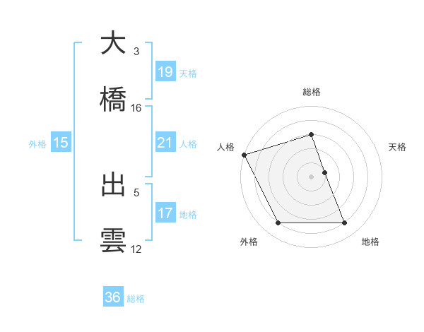 大橋 出雲さんを姓名の画数から五運を鑑定