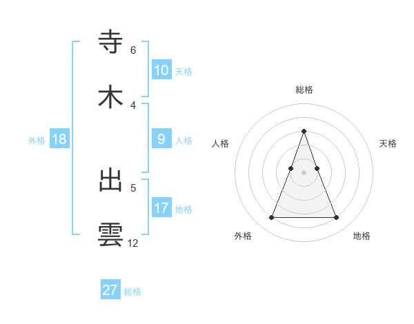 寺木 出雲さんの総格は27画の3点!
