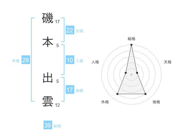 磯本 出雲さんを姓名の画数から五運を鑑定