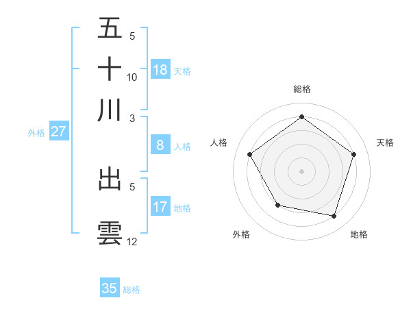 五十川 出雲さんを姓名の画数から五運を鑑定