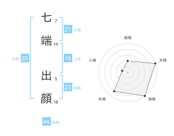 七端 出顔さんの総格は44画の2点!