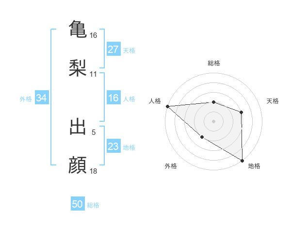 亀梨 出顔さんの総格は50画の2点!