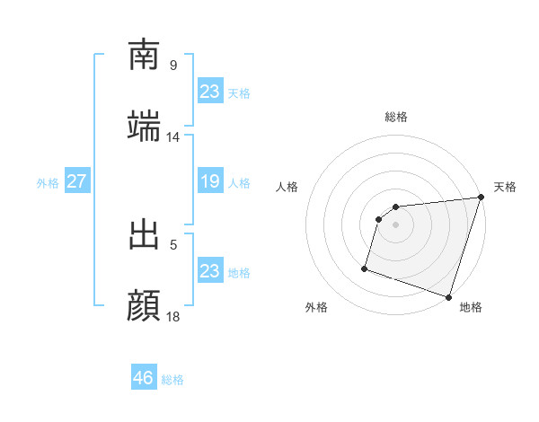 南端 出顔さんの総格は46画の1点!
