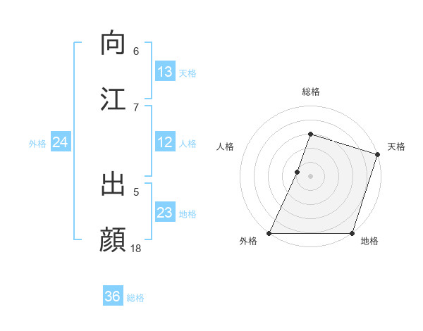 向江 出顔さんの天格は13画の5点!