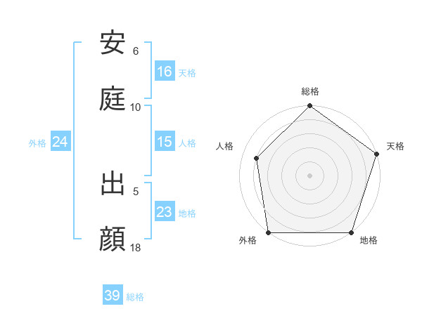 安庭 出顔さんを姓名の画数から五運を鑑定
