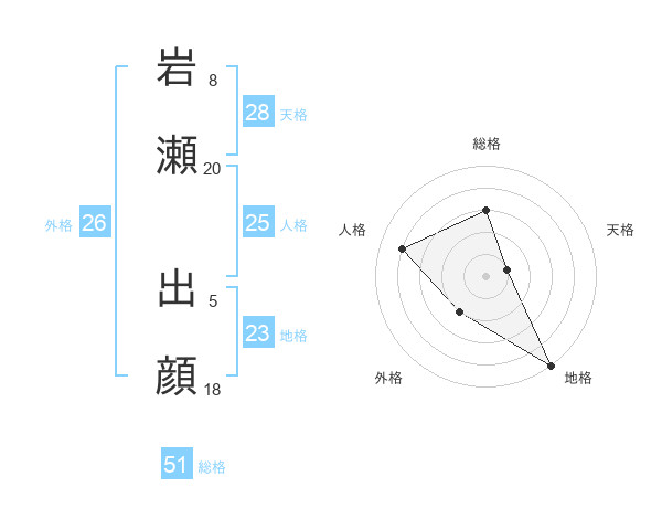 岩瀬 出顔さんの総格は51画の3点!