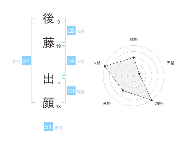 後藤 出顔さんを姓名の画数から五運を鑑定