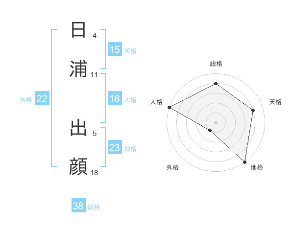 日浦 出顔さんを姓名の画数から五運を鑑定