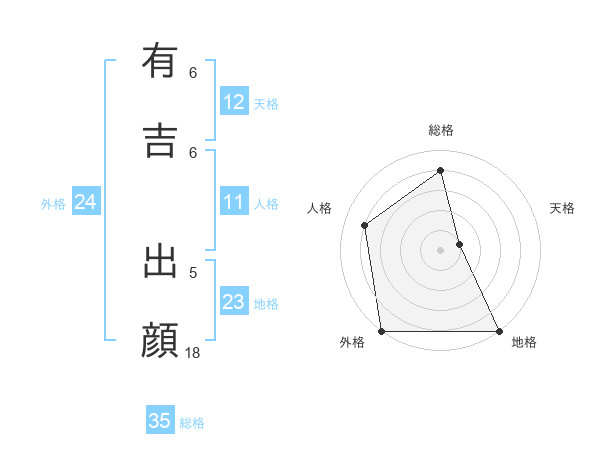 有吉 出顔さんを姓名の画数から五運を鑑定