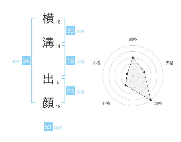 横溝 出顔さんの総格は53画の3点!