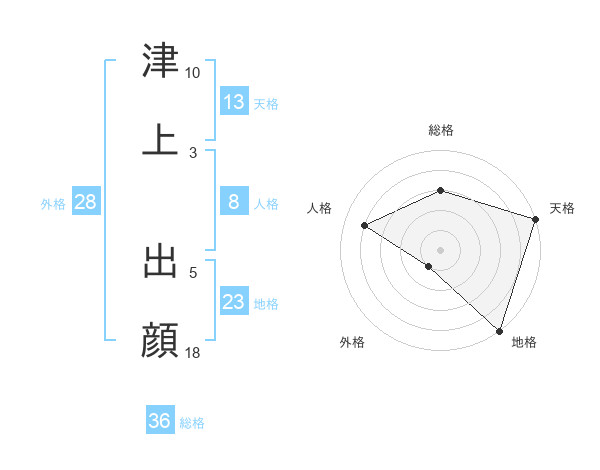 津上 出顔さんの天格は13画の5点!