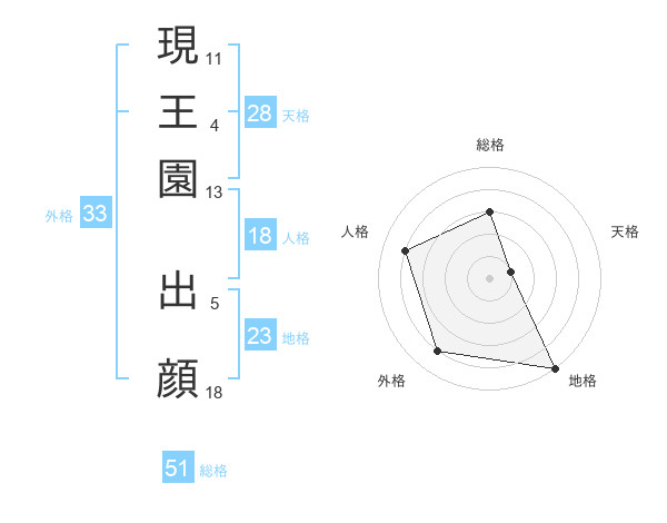 現王園 出顔さんを姓名の画数から五運を鑑定