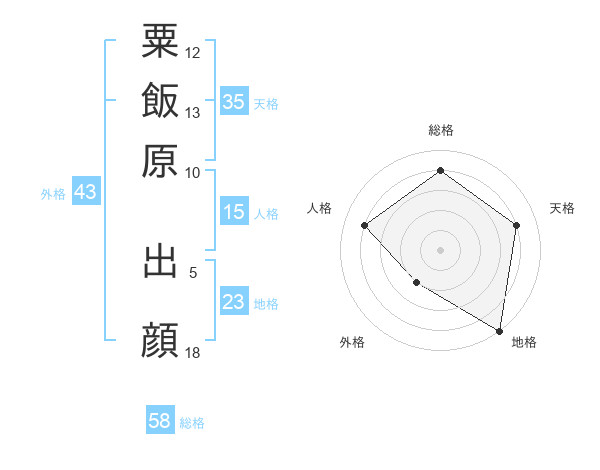 粟飯原 出顔さんを姓名の画数から五運を鑑定