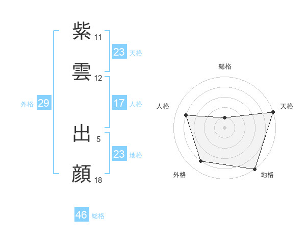 紫雲 出顔さんの地格は23画の5点!