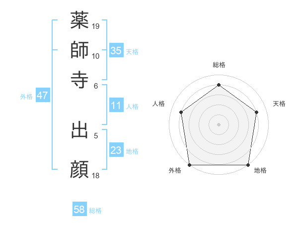 薬師寺 出顔さんの総格は58画の4点!