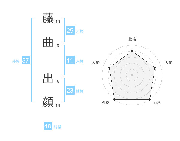 藤曲 出顔さんの外格は37画の5点!