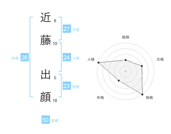 近藤 出顔さんを姓名の画数から五運を鑑定