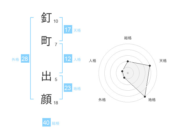 釘町 出顔さんの総格は40画の2点!
