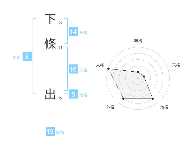 下條 出さんの総格は19画の1点!