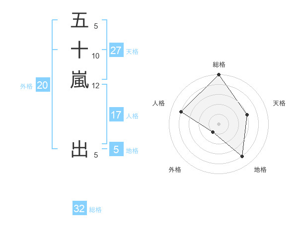 五十嵐 出さんを姓名の画数から五運を鑑定