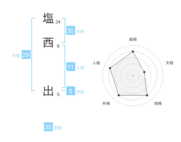 塩西 出さんの総格は35画の4点!