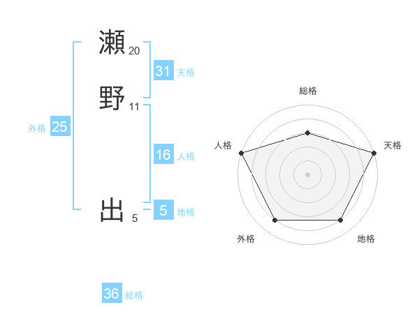 瀬野 出さんの天格は31画の5点!