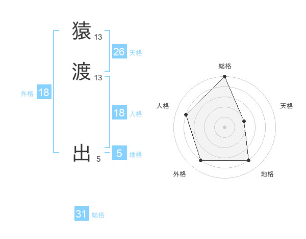 猿渡 出さんの総格は31画の5点!