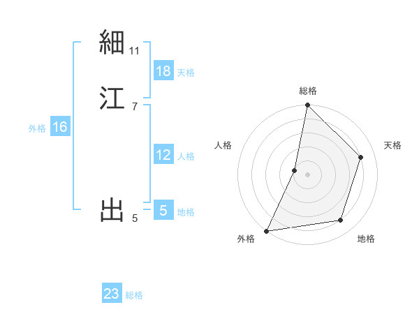細江 出さんの外格は16画の5点!