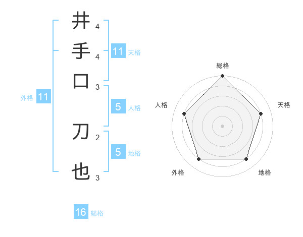 井手口 刀也さんの総格は16画の5点!