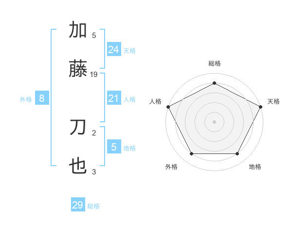 加藤 刀也さんを姓名の画数から五運を鑑定