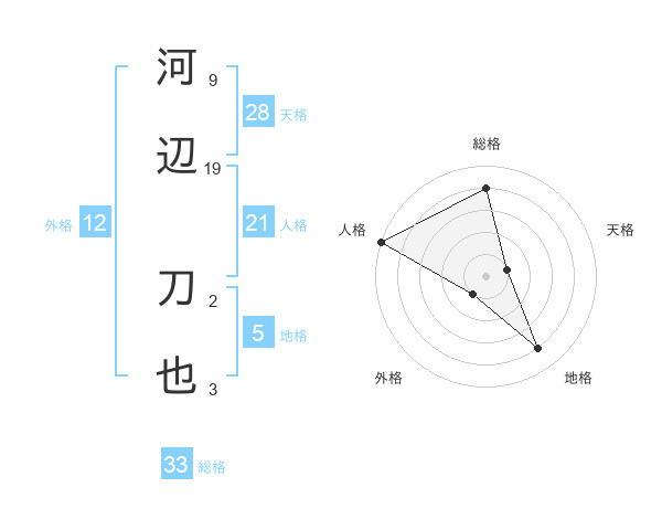 河辺 刀也さんの天格は28画の1点!
