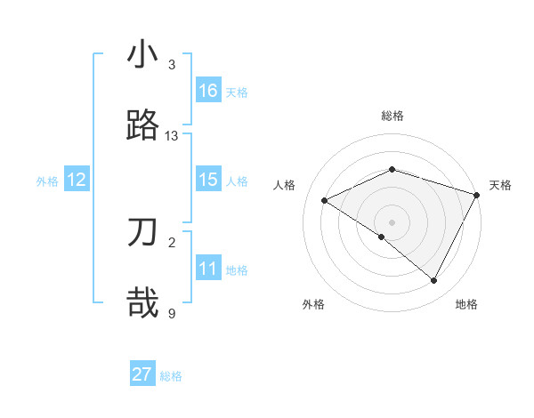 小路 刀哉さんの総格は27画の3点!