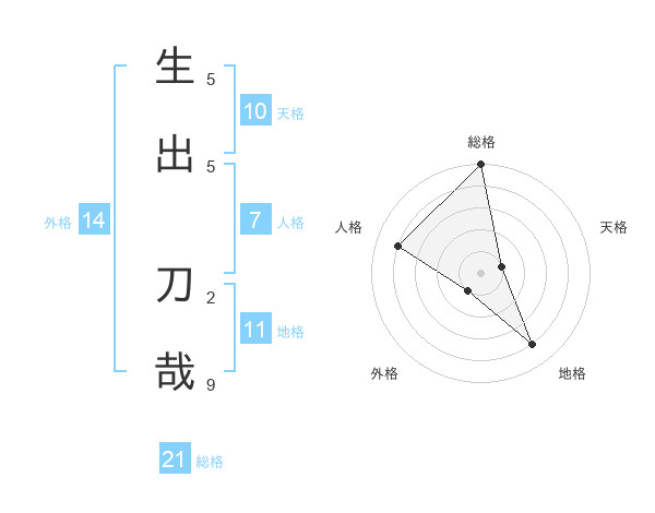 生出 刀哉さんの総格は21画の5点!