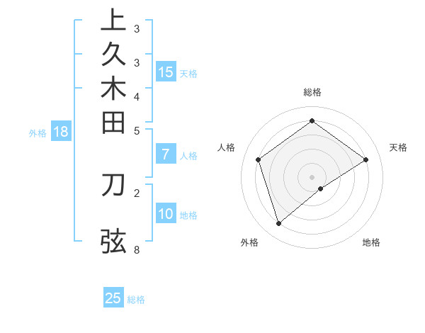 上久木田 刀弦さんの総格は25画の4点!