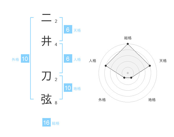 二井 刀弦さんの総格は16画の5点!