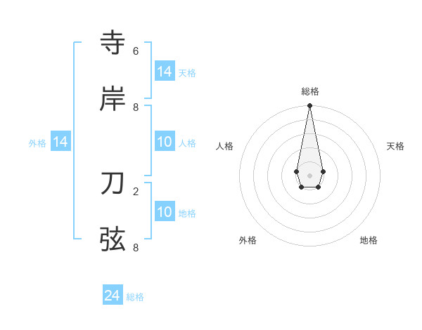 寺岸 刀弦さんの総格は24画の5点!
