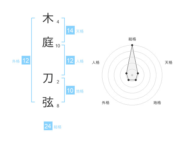 木庭 刀弦さんを姓名の画数から五運を鑑定