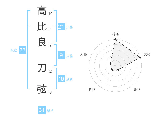 高比良 刀弦さんを姓名の画数から五運を鑑定