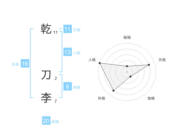 乾 刀李さんの総格は20画の1点!