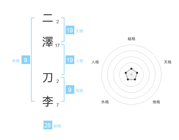 二澤 刀李さんの総格は28画の1点!