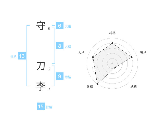 守 刀李さんの外格は13画の5点!