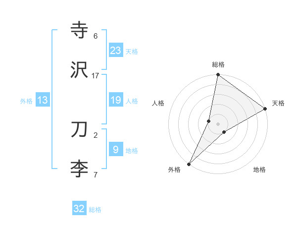寺沢 刀李さんの外格は13画の5点!
