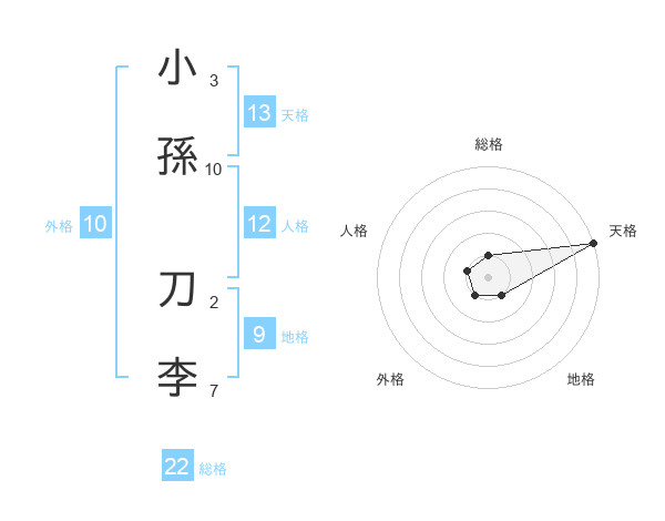 小孫 刀李さんを姓名の画数から五運を鑑定