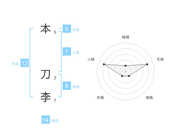 本 刀李さんの天格は5画の4点!