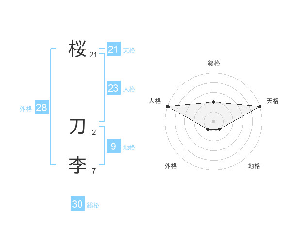桜 刀李さんの天格は21画の5点!