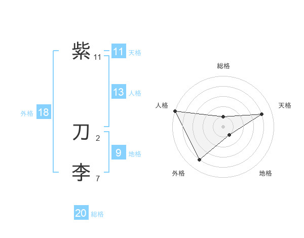 紫 刀李さんの総格は20画の1点!
