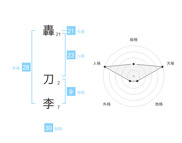 轟 刀李さんの総格は30画の2点!