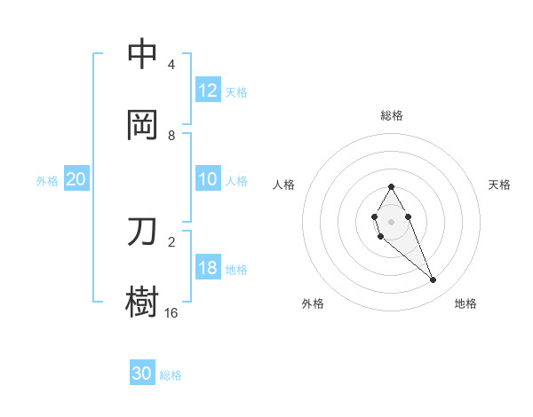 中岡 刀樹さんを姓名の画数から五運を鑑定